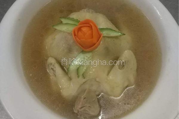步骤2、去头去鸡爪,脊梁骨拍断,留头一起放入高压锅,下料水调味,压8-10分钟,沥水