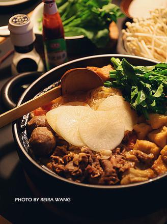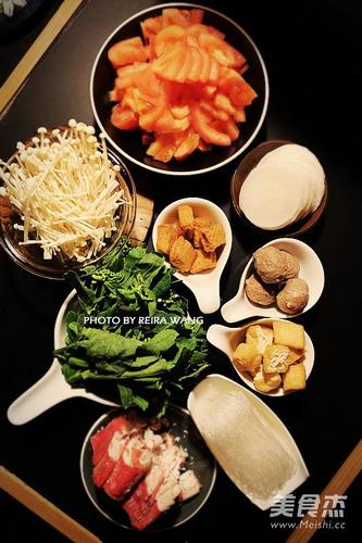 配方:金针菇,高丽菜,肉片,新鲜番茄