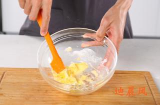 步骤2、加入蛋白搅打均匀,这个过程会比较难融合,搅打均匀即可,不需要完全融合;