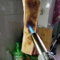 步骤1、 先处理肉上的毛。用火烧去猪毛,皮上会有发黑的迹象,这是正常的现象。