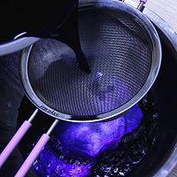 步骤2、 把泡好的蝶豆花水冷却后,用筛子过滤。