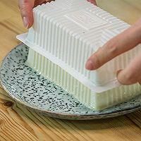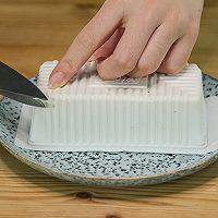 步骤2、 轻轻拍一拍豆腐就可以完整取出来了。对这个操作没把握的话可以把豆腐在冰箱里提前冻十几分钟,就能轻松取出来啦。