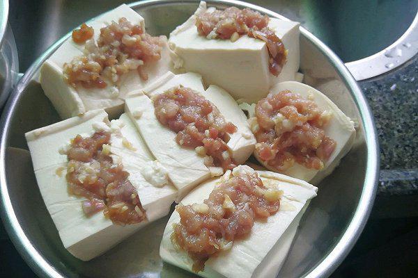 配方:豆腐,猪前腿肉,盐肉馅用,生抽调汁