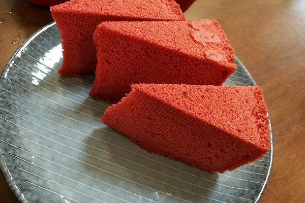 配方:鸡蛋,低筋面粉,牛奶,红曲粉