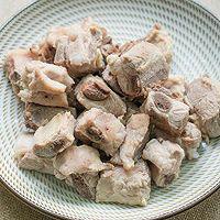 步骤2、 将排骨焯水,把排骨冷水下锅,水烧开后捞起排骨,除去血水和油沫