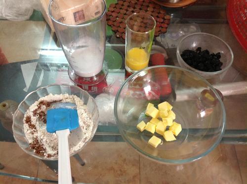 步骤1、我想这个应该不用我解释了,准备工作:黄油从冰箱里拿出来恢复到室温,切小粒备用,鸡蛋打散备用