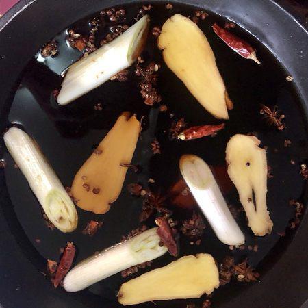 把调料都倒入锅中,(除了牛腱子+鸡蛋)加冷水,调制酱汤。不喜欢辣,可以不放干辣椒。