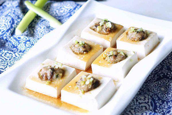 配方:豆腐,猪里脊肉,小香葱,芝麻油