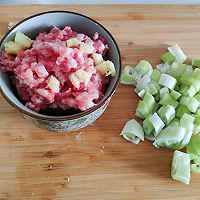 大葱切花,肉馅加入料酒姜腌制20分钟