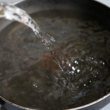 拿一个平底锅,放入适量的温水。