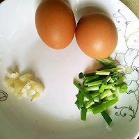 葱洗净切小段,蒜拍碎,两个鸡蛋打到碗内搅匀,虾皮洗干净。