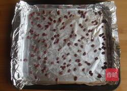 步骤1、烤盘铺好锡纸,撒上蜜红豆。