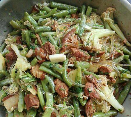 步骤2、 油锅烧热,放入葱姜煸出香味后依次放入备好的食材,再放入提前烧好的红烧肉,翻炒均匀后加入少许开水,炖好后再加入调味料即可。