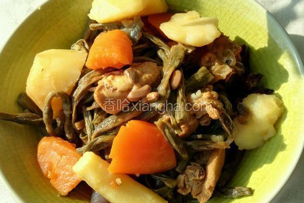 步骤2、提前泡软了一夜的干豆角,切段备用