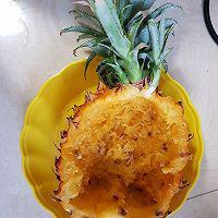 步骤1、 菠萝切去1/3,把菠萝肉掏出来,切块,盐水泡15分钟。