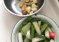 步骤2、洗净大葱、姜、蒜,切成大葱段、姜片、蒜拍碎