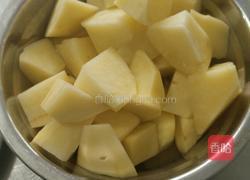 步骤2、土豆小滚刀切成个肉大小的块。蒜葱洗净备用(都不用切)