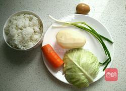 圆白菜,土豆,胡萝卜,鸡蛋,剩米饭,胡椒粉