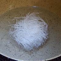 步骤1、 锅中烧开水关火,将粉丝放进去烫软。烫好取出沥干水备用。