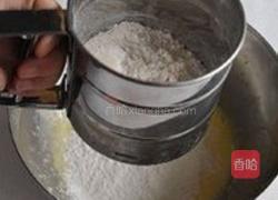 步骤2、低筋面粉用面粉筛筛过,加入蛋黄焦糖酱中,搅拌均匀,搅至面糊内没有粉块、质地光滑为止;