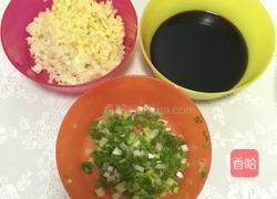 姜蒜葱切碎,倒入酱油,料酒,蒸鱼豉油,糖,盐调料汁