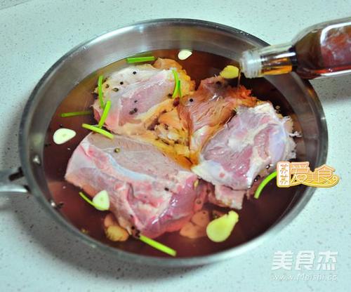 步骤2、捞出牛肉用牙签在牛肉上插些小孔,放进起锅加入最后一次浸泡的调料水,倒入料酒,慢火煮开3分钟捞出。