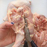 步骤2、 鸡腿洗干净后用剪刀剪开,剔骨
