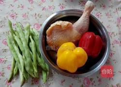 准备食材:大鸡腿、红椒、黄椒、芸豆。