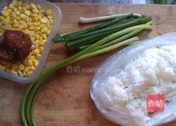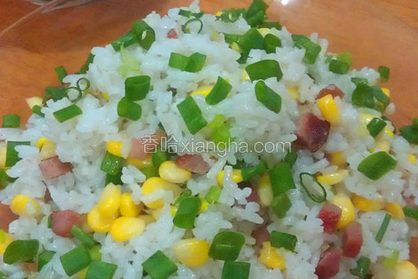 米饭,叉烧,玉米粒,小葱,蒜苔
