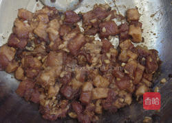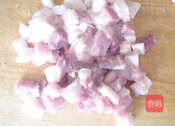 步骤2、酱肉馅:切好的猪肉放盆里,然后加入如下的佐料:适量的豆瓣酱、姜末少许、蒜末少许、十三香少许、耗油少许、花生油适量(多放),搅拌均匀放一边入味,我是早晨酱上中午包。