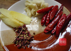 配方:2片生姜,2勺花椒,1勺料酒,1勺香油