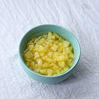 步骤1、 菠萝从三分之一处切开,取肉,放入盐水浸泡