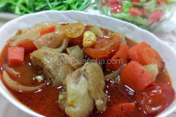 鸡肉1/红萝卜1条牛番茄2个洋葱1个蒜头10瓣盐适量柠檬汁1个番茄煳2大匙