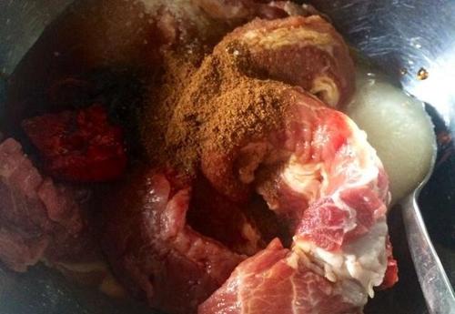 梅花肉500g红腐乳汁1大勺酱油4大勺红腐乳2块五香粉1小勺蒜蓉10g料酒2大勺蚝油1大勺细砂糖50g蜂蜜1大勺