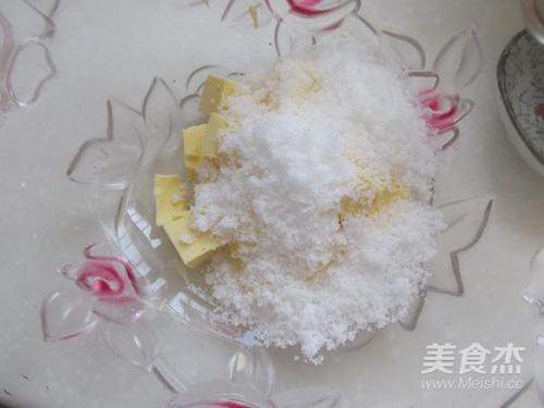 步骤2、黄油室温融化,加白糖打匀