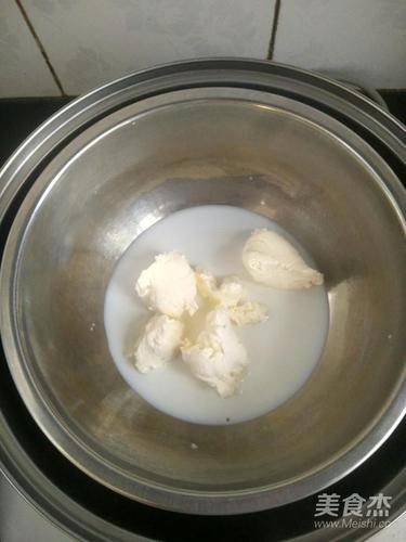 奶油奶酪加牛奶隔热水搅拌细腻无颗粒状。