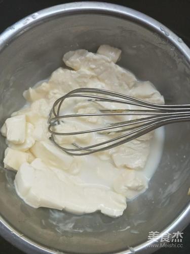 奶油奶酪切小块,加入30克牛奶隔热水搅拌均匀。