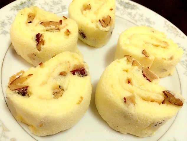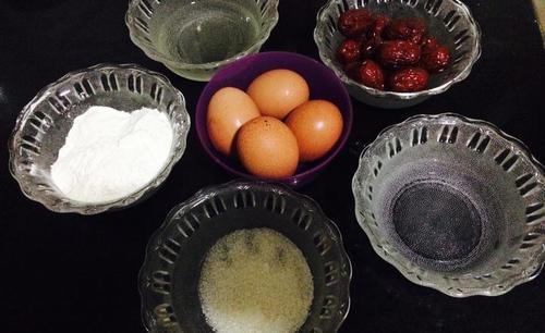 鸡蛋4个白砂糖40g牛奶50ml色拉油50ml蛋糕粉80g红枣适量