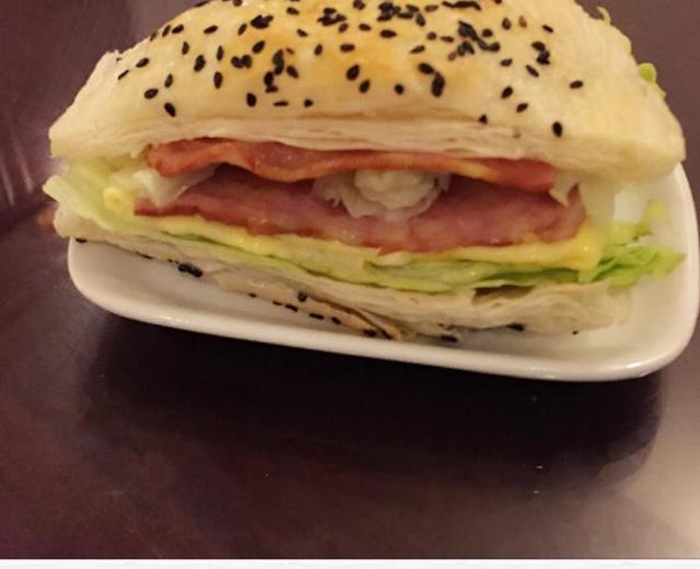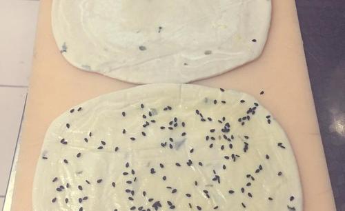 飞饼思念飞饼2张鸡蛋2只培根2片生莱2叶黑芝麻若干盐少许(1克)海天拌饭酱或千岛酱少许