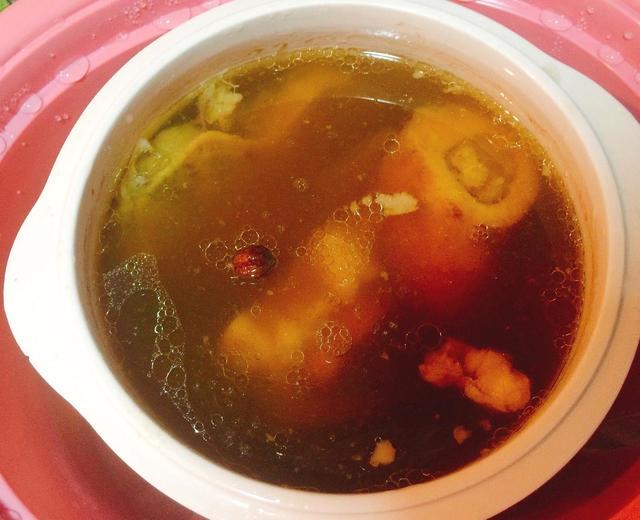 牛骨3块无花果一颗红枣一颗草果一颗葱白一大节生姜三大片蒜一颗茯苓山药白豆蔻香片花椒少许