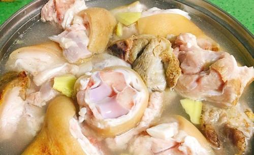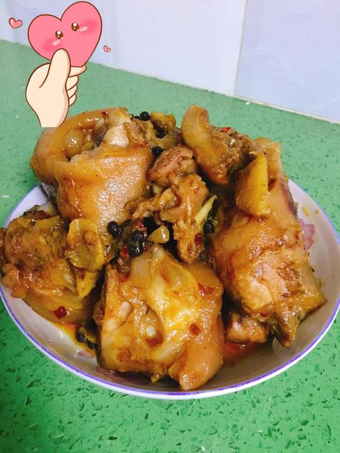猪蹄适量大葱适量姜片适量八角适量花椒适量豆瓣适量料酒适量生抽适量白糖适量盐适量