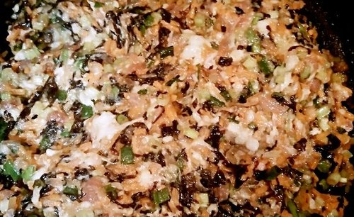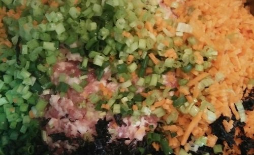 油豆腐500g猪肉200g胡萝卜一个芹菜一把小葱一把生抽六勺料酒三勺耗油两勺胡椒粉少许味精一勺紫菜少许