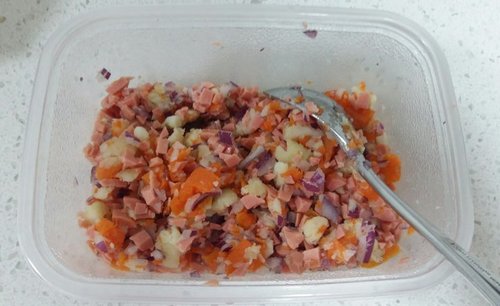 洋葱半个土豆1个胡萝卜1根火腿适量鸡蛋2个白胡椒适量盐适量味精适量