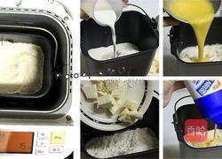 步骤1、所有食材量秤好备用。在面包机容器内装上《面包叶片》奶油切小块,鸡蛋打散盐和酵母请不要直接接触以免影响发酵情况