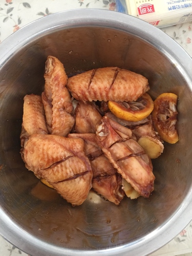 柠檬1个鸡翅8个生抽1勺老抽半勺蚝油2勺蜂蜜1勺