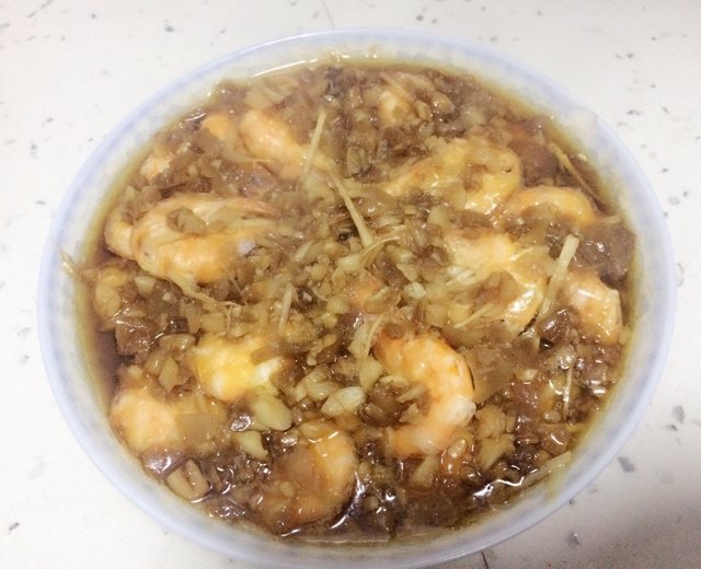 虾20只剁椒适量蒜5-6瓣盐适量生抽适量葱花适量油适量姜5片(切丝)