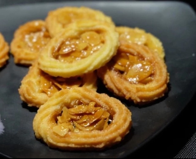 黄油35克低筋面粉75克糖粉40克盐2克全蛋液15克牛奶15克馅料:黄油20克杏仁片30水40克糖40克