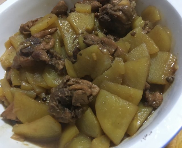 土豆3个鸡腿2个干辣椒若干青椒2个葱2根葱叶姜2片蒜瓣花椒一小把八角2个盐适量料酒适量酱油适量味精适量耗油适量十三香或炒炖香适量