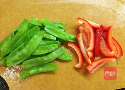步骤2、将荷兰豆去筋蒂;甜椒去籽,切条备用。