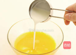 步骤1、鸡蛋打散后,加入鲜奶油、盐、胡椒粉均匀搅拌。